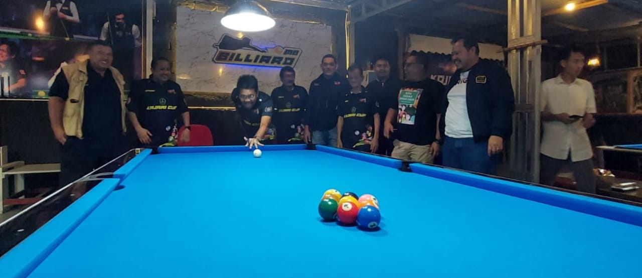 SUARABAHANA.COM — Turnamen biliar bola sembilan Kajari Cup 2023 resmi dibuka, Kamis (23/2/2023) malam. Kegiatan berlangsung hingga 26 Februari 2023 di OMB Billiard Cafe Temu Kopi Pangkalpinang.