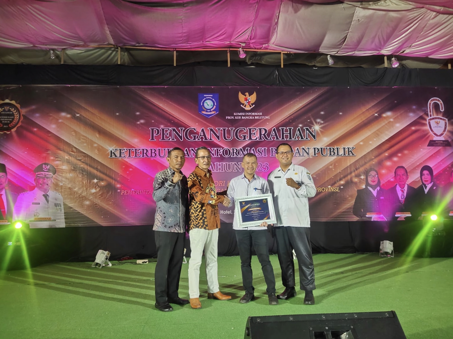 Bupati Bangka Selatan yang diwakili oleh Pelaksana Yugas Kadis Kominfo, Yuri Siswanto, menerima sertifikat penghargaan sebagai bentuk apresiasi atas dedikasi dan kinerja luar biasa dalam penyelenggaraan informasi publik.