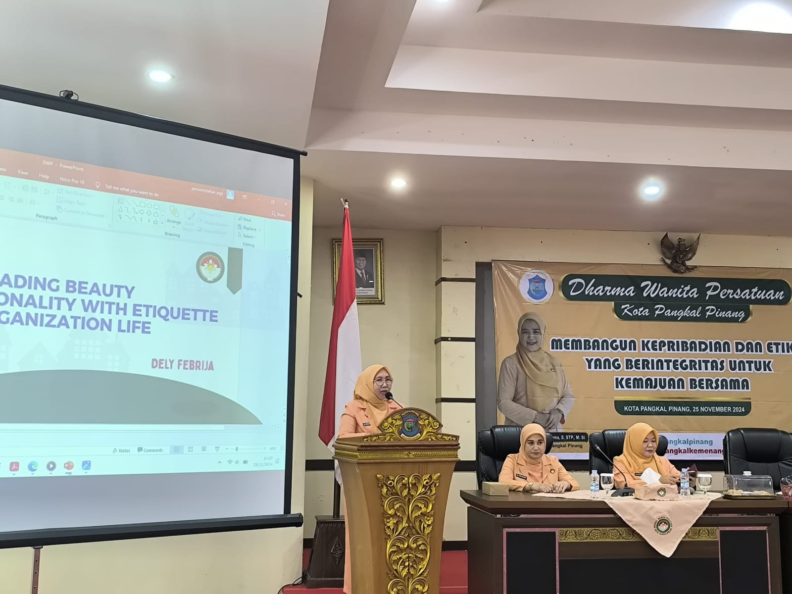 SUARABAHANA.COM — Dharma Wanita Persatuan (DWP) Kota Pangkalpinang mengadakan seminar kepribadian pada Senin (25/11/2024) yang bertempat di Ruang Pertemuan OR Kantor Wali Kota Pangkalpinang. Seminar ini diikuti oleh para pengurus dan anggota DWP Kota Pangkalpinang sebagai bagian dari perayaan Hari Ulang Tahun (HUT) ke-25 organisasi tersebut.