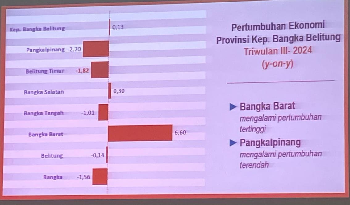 Menurut data dari Badan Pusat Statistik (BPS), meskipun ekonomi Babel mengalami penurunan, dengan lebih dari separuh kabupaten/kota di wilayah tersebut tercatat mengalami kontraksi ekonomi, Basel berhasil mempertahankan pertumbuhannya. Bahkan, angka pertumbuhan ekonomi di triwulan tiga ini merupakan yang terendah di Indonesia, namun Basel tetap menunjukkan hasil yang relatif lebih baik.
