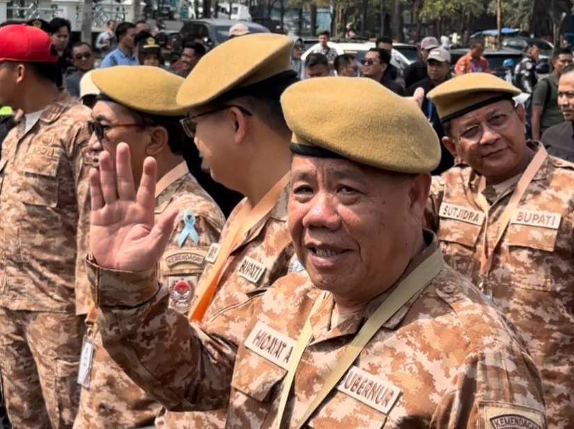 Gubernur Hidayat tiba sekitar pukul 11.00 WIB dari Jakarta menggunakan kereta cepat WHOOSH, mengenakan Pakaian Dinas Lapangan (PDL) Praja yang menambah kesan gagah dan profesional.